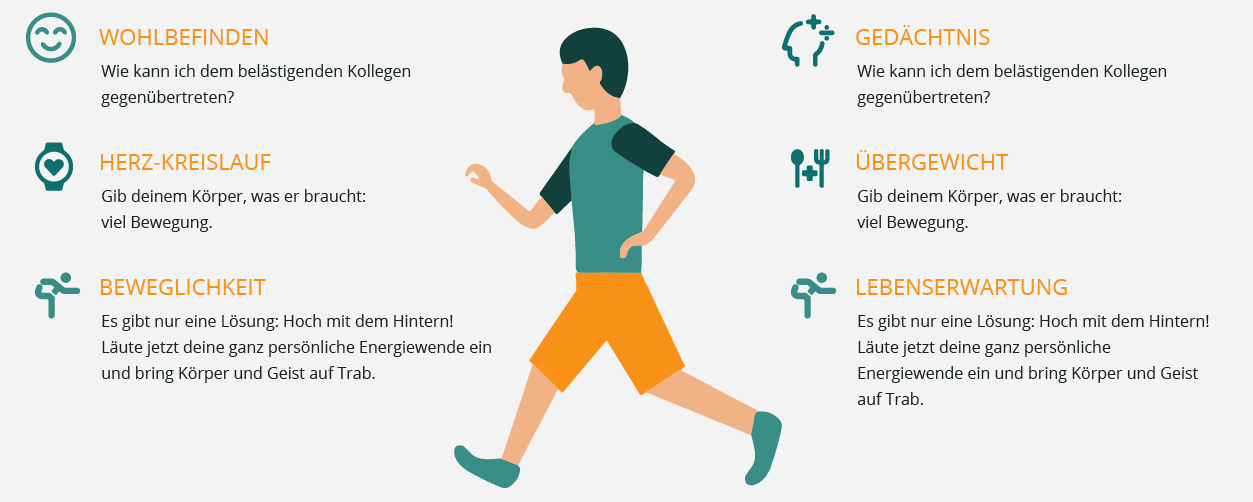 - Bewegung fängt im Alltag an. Nutze einfach alle Möglichkeiten, dich zu bewegen: Geh konsequent tägliche Wege